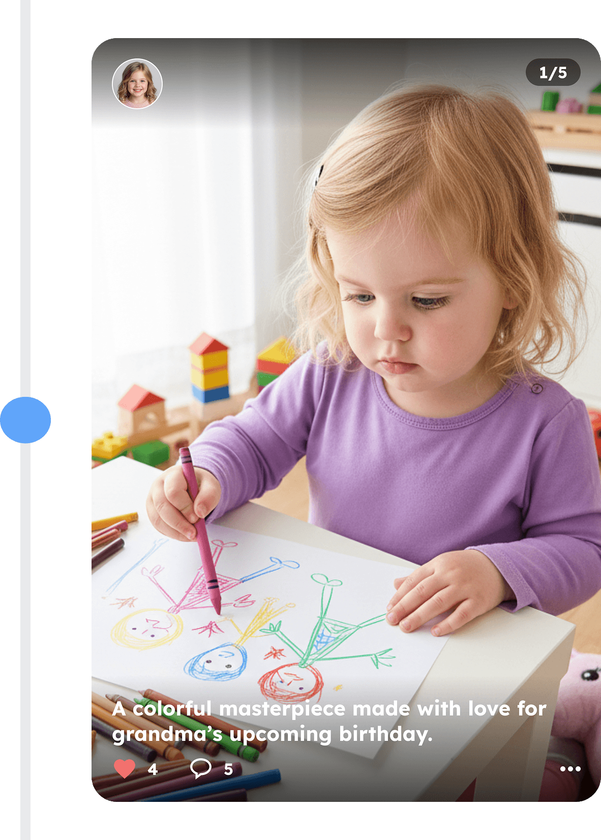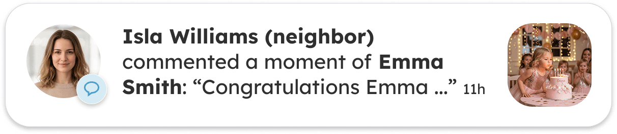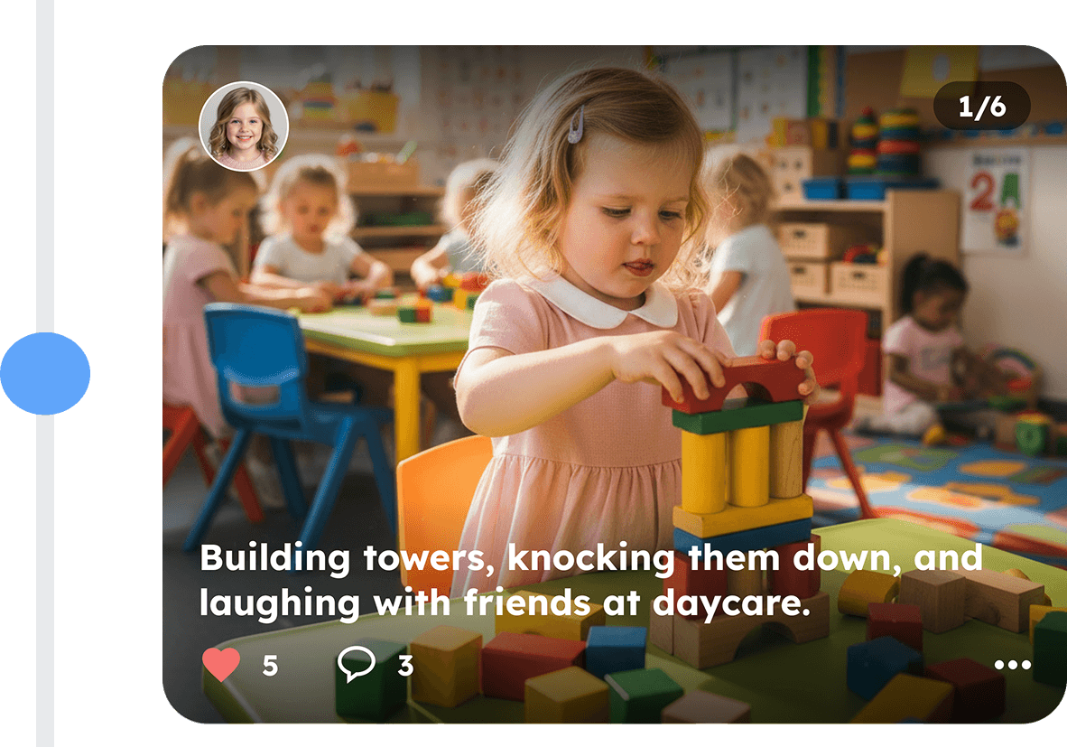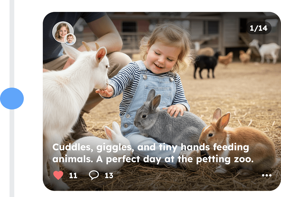 A private space where the early years of a child are captured as meaningful moments with context, photos, videos, and milestones. All in one place, shared with the people who truly matter.