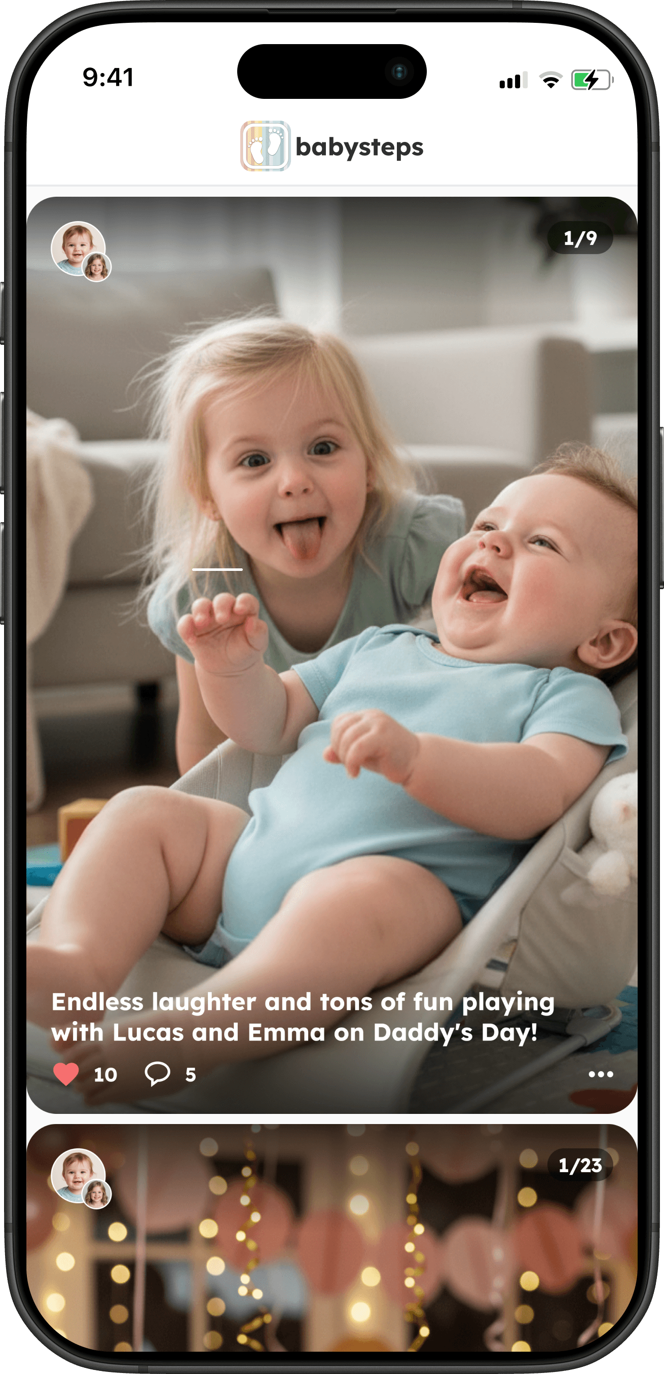 A personal timeline: Your child’s moments organised in a clear, age-based feed.